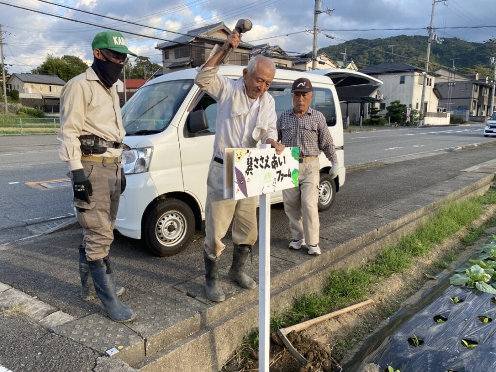 中学生の思いが込められた看板とともに、地域みんなで野菜を育てていきたいと思います。