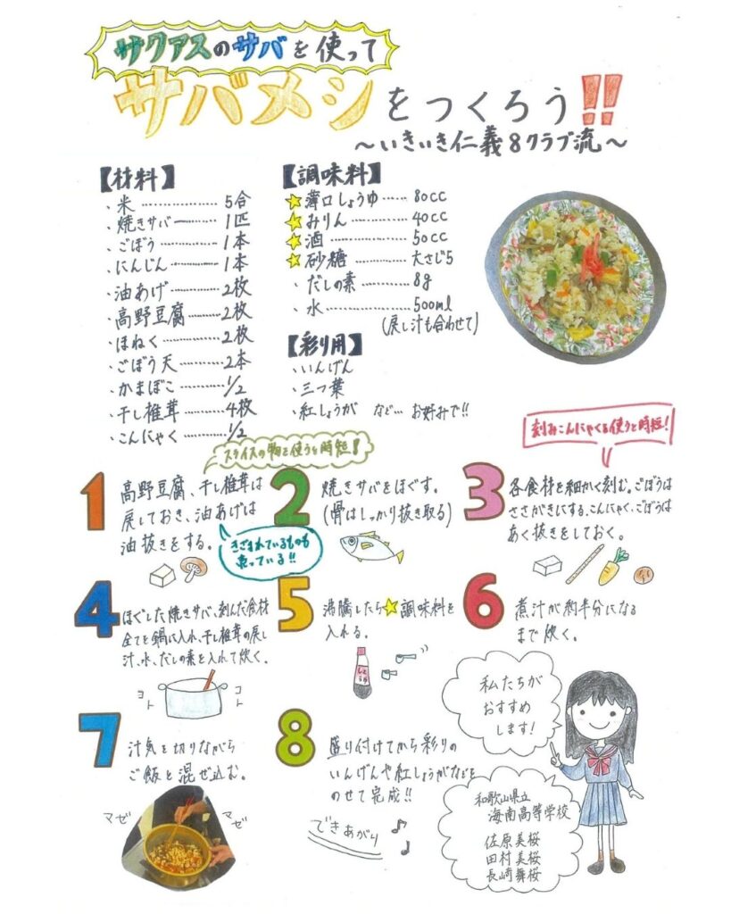 そして、一緒にさばめしを作った高校生が『いきいき仁義8クラブ流さばめしレシピ』を描いてくれました♪