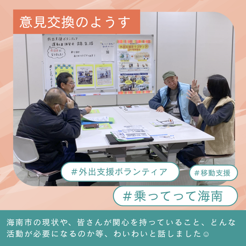 当日は、外出支援ボランティア「乗ってって海南」のメンバーも、一緒に情報交換・交流会に参加してくれました。