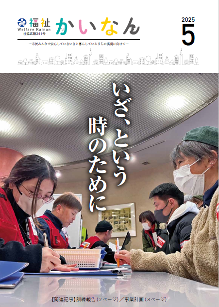 広報紙2025.05.01福祉かいなん 第241号(2025年5月号)災害ボランティア訓練報告令和7年度事業計画・予算心配ごと相談日程おもちゃ病院開院日日赤募集寄附お礼福祉かいなん 第241号(2025.5月)